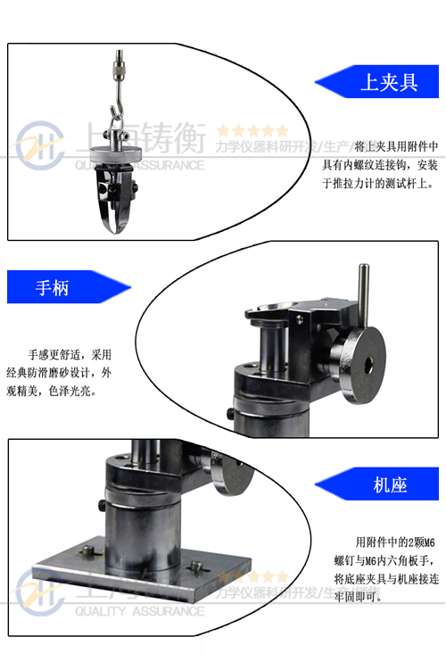 高精度鈕扣拉力測試儀 功能: 上海鑄衡生產的高精度鈕扣拉力測試儀可配置NK及HF推拉力計專用夾具,我司高精度鈕扣拉力測試儀專用于測量鈕扣的扣合力或脫離衣物破壞力。檢測鈕扣、按鈕等固定強度是很重要的一項標準,尤其是在嬰兒和兒童服裝設計及制造中最為
