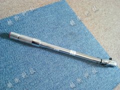 3,首先在預置式扭力扳手上設定所需扭距值(由彈簧套在頂桿上向扭距釋放關節施壓),鎖定扭距扳手開始擰緊螺栓,當螺栓達到扭距值后(當使用扭力大于彈簧的壓力后)會產生瞬間脫節的效應.在產生脫節效應的瞬間發出關節敲擊扳手金屬外殼所發出的"卡塔"聲.由此來確認達到扭距值的提醒作用.(其實就象我們手臂關節成15度彎曲放在鐵管里瞬間申直后會碰到鋼管的原理一樣).